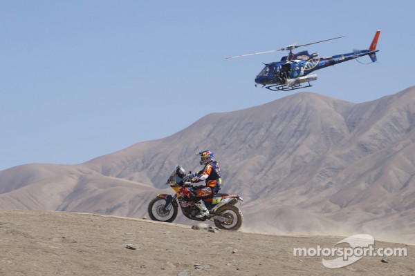 В классе мотоциклов быстрее всех добрался до финиша португалец Хелдер Родригес. Австралиец Тоби Прайс, а третье время дня у Паулу Гонсалвеша. Лидеры общего зачета, Хоан Барреда и Мар Кома, немного заплутали на трассе и прибыли к финишу на шестом и седьмом месте.