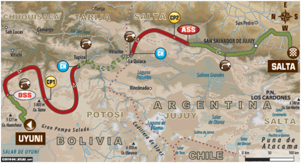 Сегодня участники марафона возвращаются в Аргентину, где у них будет возможность отдохнуть и подремонтировать технику. Длина перегона из Уюни в Сальту составляет 817 километров, из которых 336 км приходятся на спецучасток.