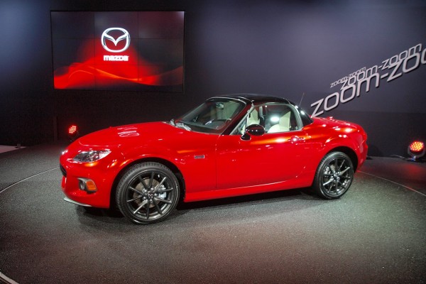 На автосалоне в Нью-Йорке японская компания представила 2015 Mazda MX-5 25th Anniversary Edition. Эта версия была создана в честь 25-летия первой модели, представленной в 1989 году на автосалоне в Чикаго. Собственно, перед нами эксклюзив, так как выпустят его очень ограниченной партией в 100 штук.