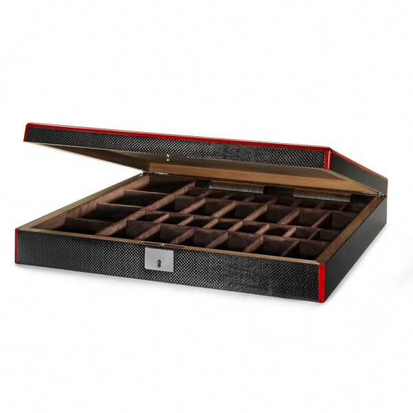 Как и многие производители автомобилей, компания Ferrari старается заработать на различных товарах, которые продаются под ее брендом. Хорошим примером являются шахматы Ferrari, обладающие впечатляющим дизайном, который имеет ряд отсылок к автомобилям компании. Игральная доска сделана из углеродного волокна и стекловолокна, в то время как шахматные фигуры сделаны из черного и красного лакированного дерева. По сути, это набор 2 в 1, так как сюда также входят шашки.