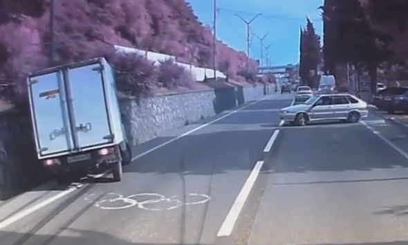 В Адлерском районе Сочи водитель ВАЗ-2114 устроил ДТП и скрылся с места происшествия. Инцидент попал в объектив камеры одно из автомобилей.
