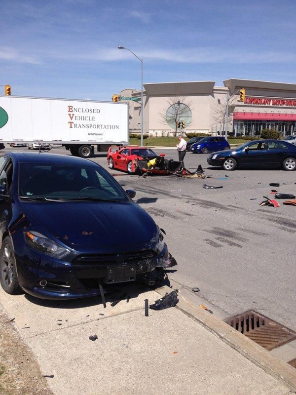 Авария произошла в Канаде в провинции Онтарио. По словам очевидцев, Dart проехал на красный свет и врезался в F40. За рулем итальянца находился механик, которые решил выехать на небольшой тест-драйв суперкара после ремонта. Очевидно, что он также оказался в очень плохом положении, как и владелец Dodge. Ни один из водителей не пострадал, но очевидно, что суммы на ремонты будут потрачены очень большие.