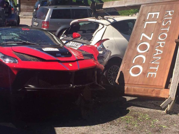 Как сообщается, владелец красного LaFerrari чихнул, в результате чего потерял управление над автомобилем. Он врезался в черный LaFerrari, а также зацепил припаркованный Lancia Epsilon.