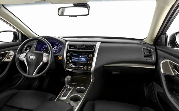 Внутренний интерьер Nissan Teana выполнен из мягкого пластика, который сочетается с кожаной обивкой сидений. На удобном кожаном с пластиковыми вставками руле предусмотрены упоры для больших пальцев, рулевую колонку можно отрегулировать как по высоте, так и по вылету. На руле также расположены кнопки управления бортовым компьютером и аудиосистемой. Главный принцип внутреннего дизайна автомобиля – удобство: здесь все продумано до мелочей, в каждой детали чувствуется забота о водителе и пассажире. Шумоизоляция салона не вызывает нареканий, на холостых оборотах двигателя практически не слышно. Удобные кресла - как водительское, так и пассажирские (результат новейшей разработки компании Nissan совместно с НАСА) - не дадут утомиться во время длительной поездки.