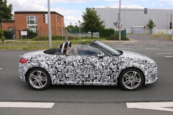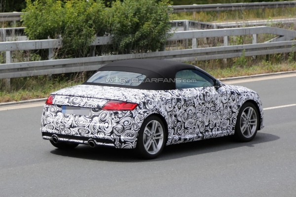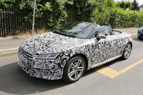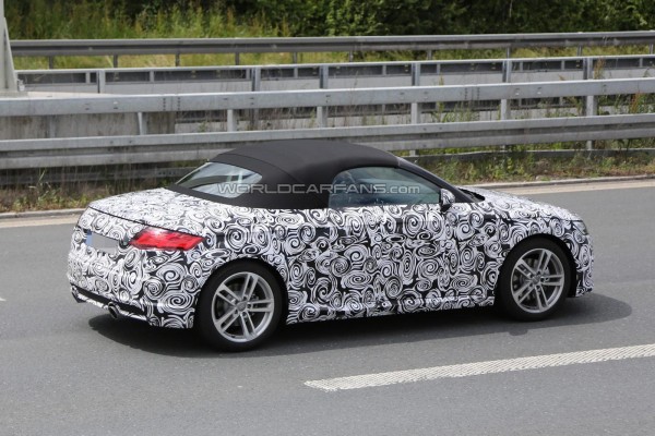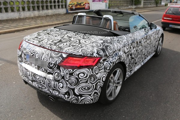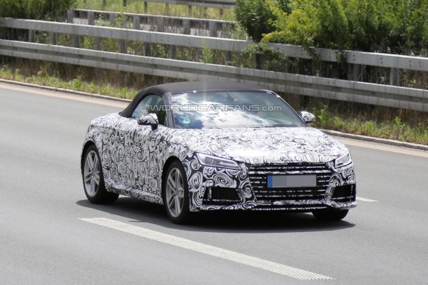 Эта версия была сфотографирована впервые. Несмотря на камуфляж, видно, что 2015 Audi TT Roadster практически не отличается от собрата. Само собой, кроме другой крыши.