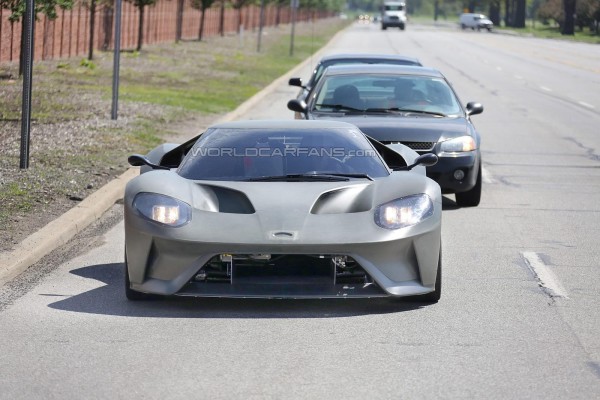 Автошпионы сделали несколько фотографий прототипа 2017 Ford GT. Он выглядел весьма угрожающе, так как тестировали его с голым карбоновым кузовом, не покрытым краской.