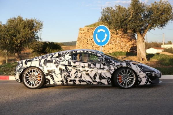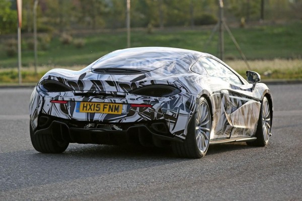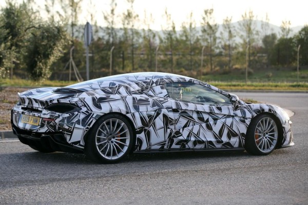 О том, что перед нами McLaren 570S GT говорит увеличенная высота крыши сзади, которая позволит получить дополнительное место в салоне для использования конфигурации 2+2. Сзади можно заметить смену расположения стоп-сигналов. Отметим, что не стоит ожидать полноценные сиденья сзади, там хватит места только для детей. Помимо этого, интерьер потеряет ряд своих спортивных решений в пользу комфорта.