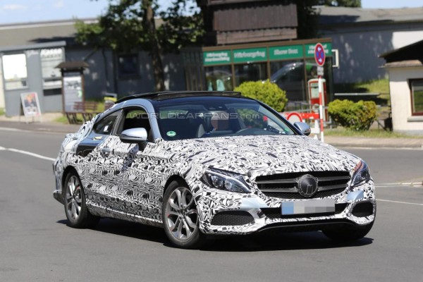 В интернете появились новые шпионские фотографии Mercedes-Benz C-Class Coupe (C205), который идет по стопам седана (W205), но лишился двух дверей и получил более наклонную крышу.