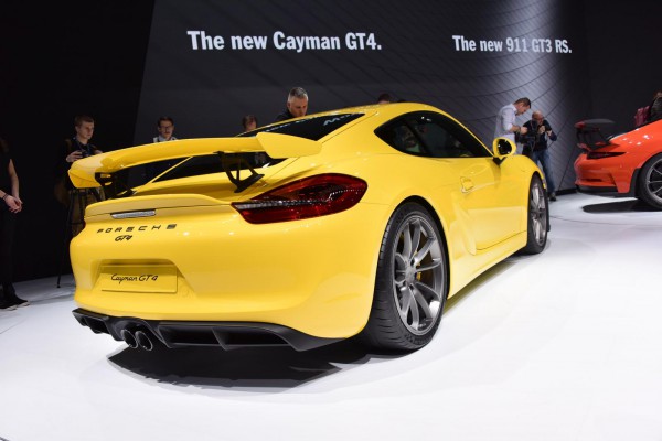 Porsche Cayman GT4 получил более агрессивный боди-кит, а также неподвижное заднее крыло, уменьшенный на 30 мм дорожный просвет и усиленные тормоза.