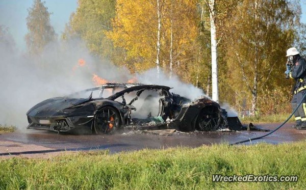 Недавно мы писали о сгоревшем в Дубае Lamborghini Aventador. В этот раз аналогичный суперкар сгорел в Швеции.