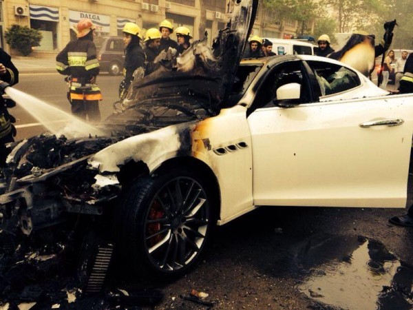 Новенький седан Maserati Quattroporte стал «звездой» Баку, столицы Азербайджана. Роскошный автомобиль практически полностью сгорел на прошлые выходные. Случайные прохожие сделали несколько снимков с места. Зрелище печальное.