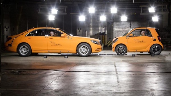 Немецкая компания недавно представила новый Smart ForTwo. Чтобы показать, на сколько этот малыш надежен, было решено столкнуть его лицом к лицу с Mercedes-Benz S-Class. И сделали это в буквальном смысле.
