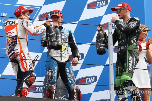 Гонка в испанской провинции Арагон прошла в непростых погодных условиях. Лучше всех с влажной трассой справился Хорхе Лоренцо, который одержал первую в этом сезоне победу. Второй результат показал Алекс Эспаргаро, а третьим стал Кэл Кратчлоу.
