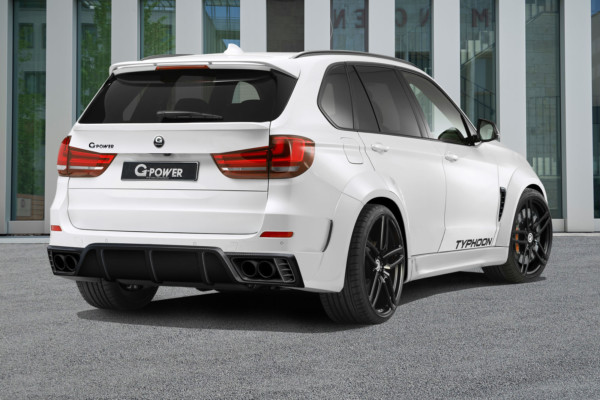 2016 G-Power BMW X5 M Typhoon получил новые передние и задние бамперы, капот из углеродного волокна и боковые юбки. Сзади также можно увидеть 102-мм трубы выхлопной системы, которая выполнена из титана. В колесных арках располагаются 23-дюймовые колеса в топовой версии и 21-дюймовые в стартовой версии пакета.