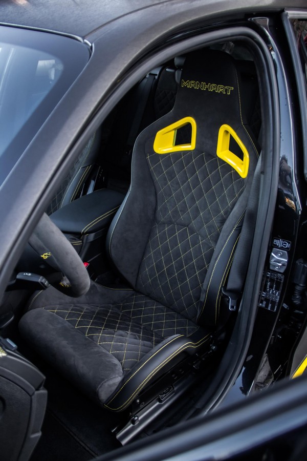 В салоне специалисты Manhart использовали кожу и алькантару, а также панели из углеродного волокна. Нужно также отметить, что хетчбек получил матовую пленку на кузов, шапки боковых зеркал из карбона, а также новый сплиттер и диффузор.