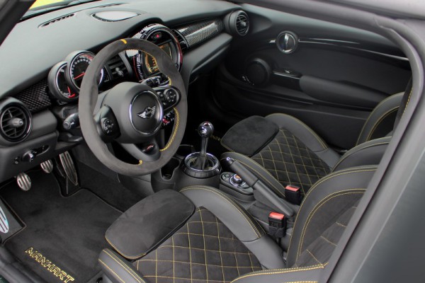 Среди других улучшений Manhart Mini F300 регулируемая подвеску, уникальная раскраска кузова, новые 19-дюймовые легкосплавные колесные диски, обновленная обивка салона, включающая высококлассную кожу и алькантару, фирменные напольные коврики.