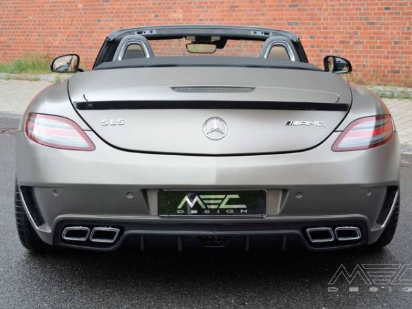 Конечно, «улучшенный» трудно применять к Mercedes SLS AMG Roadster, так как и в стоке это великолепный автомобиль, но тюнеры попытались сделать его еще привлекательней. Появился новый обвес, включающий обновленный передний бампер с интегрированными светодиодами, боковые юбки, задний бампер, передний спойлер из карбона, шапки боковых зеркал из этого же легкого материала, задний спойлер и диффузор в стиле Black Series. Дополняет экстерьер карбоновая отделка выхлопных труб. В салоне появилось множество новых вставок из углеродного волокна, а также алькантара в отделке руля.