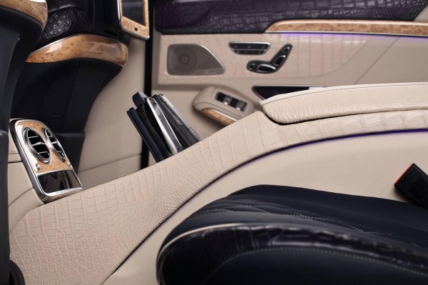 Российские тюнеры из TopCar модифицировали салон бронированного Mercedes-Benz S-Guard W222. Они использовали крокодилью кожу с мягкой кожей «Наппа», плюс разбавлено контрастной строчкой. Получилось очень дорого и со вкусом.