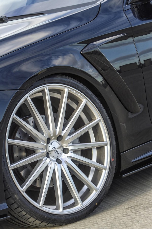 Начнем с экстерьера, где был установлен обновленный бампер со спойлером из углеродного волокна, новые светодиодные ДХО, боковые юбки из карбона, плюс появилась накладка на заднем бампере. На выбор тюнеры предлагают различные варианты колесных дисков размером от 20 до 22 дюймов. Также была установлена спортивная выхлопная система с клапаном управления.